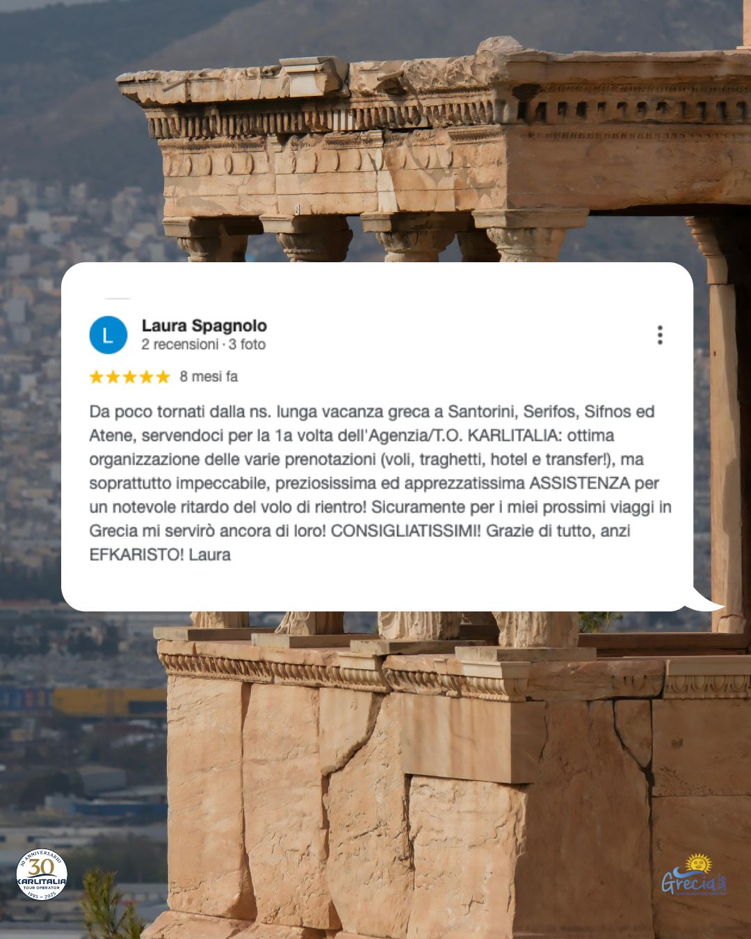 Noi di Karlitalia Grecia365 dal 1995 accompagniamo gli italiani a scoprire la Grecia, quella autentica, fatta di spiagge ancora selvagge, taverne nascoste, sentieri che nessuna guida turistica ha ancora mappato. Quello che proponiamo lo abbiamo visto, vissuto e scelto personalmente. Conosciamo le strutture perché ci siamo stati. Conosciamo le strade perché le abbiamo percorse. Conosciamo i ristoranti perché ci abbiamo mangiato. E conosciamo i problemi che possono capitare perché negli anni li abbiamo visti (e risolti).